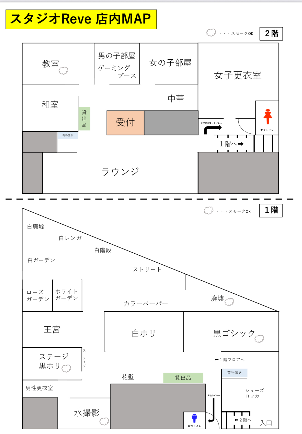 ・風俗系コスプレ、アダルト系など公序良俗に反する撮影及びそれらに類するグッズの持込み(貸切時も禁止となります)
